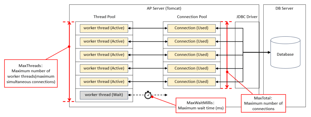 The key points to manage on the AP server are mainly the thread pool, the application, and the database connections.