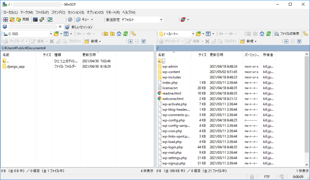 FTPプロトコルでサーバーにアクセスし、必要なファイルをコピーします。ここでは、SCPクライアントソフトである WinSCP を使用した手順を説明します。
