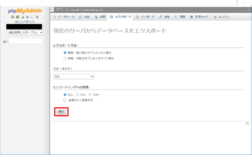 まずは、管理画面の 「サーバーの管理・設定 > データベース」 にアクセスしてください。