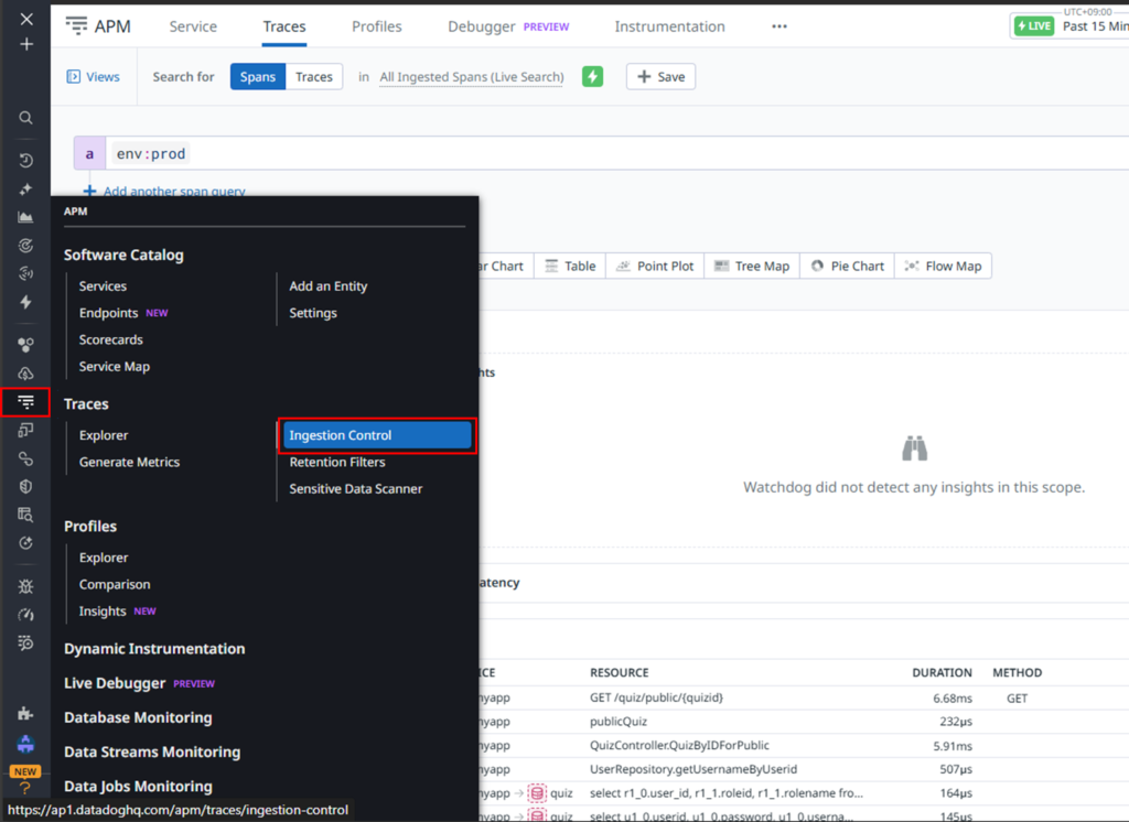 APM > Ingestion Control をクリックしてください。