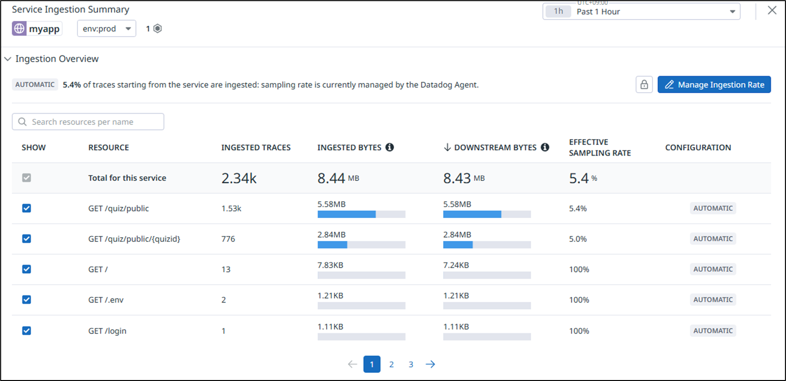 まず、現状の設定でDatadogに転送しているデータ量を確認します。