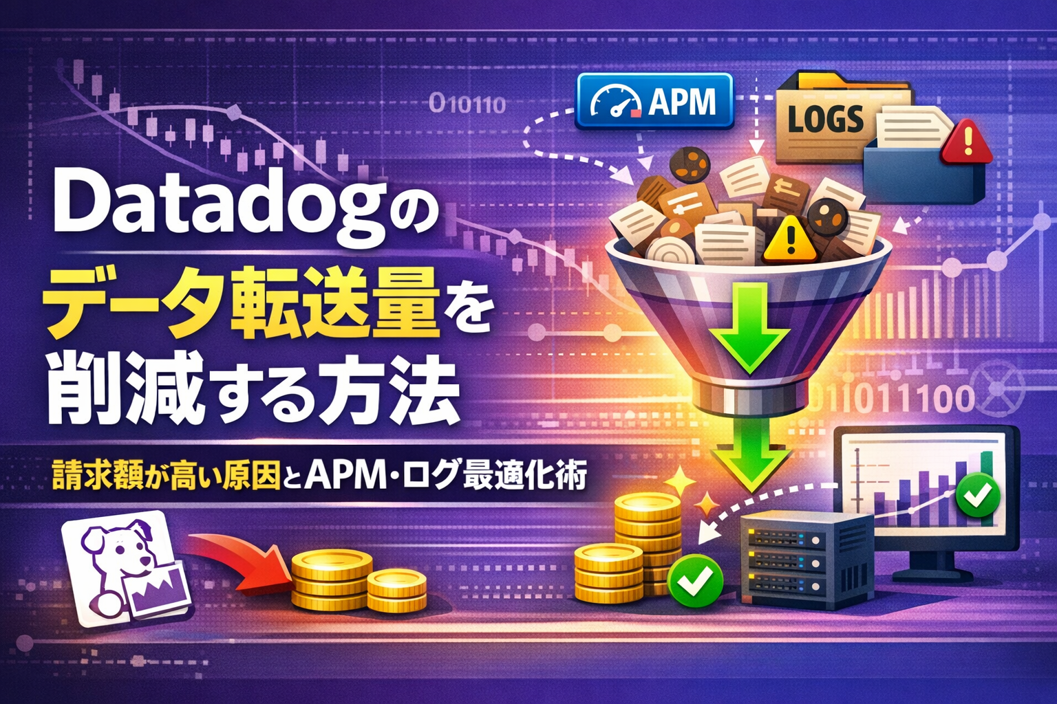 Datadog のコスト増加の多くは、「気づかないうちに送信している大量のデータ」によって発生します。重要なのは、機能を止めることではなく、送信するデータの粒度と設計を見直すことです。