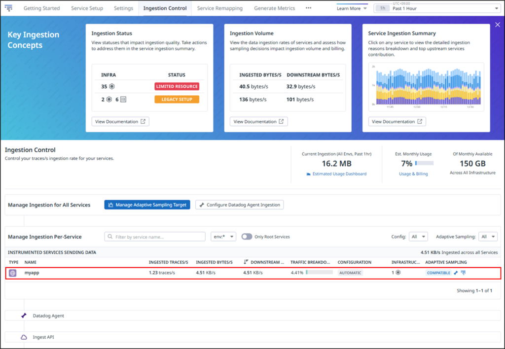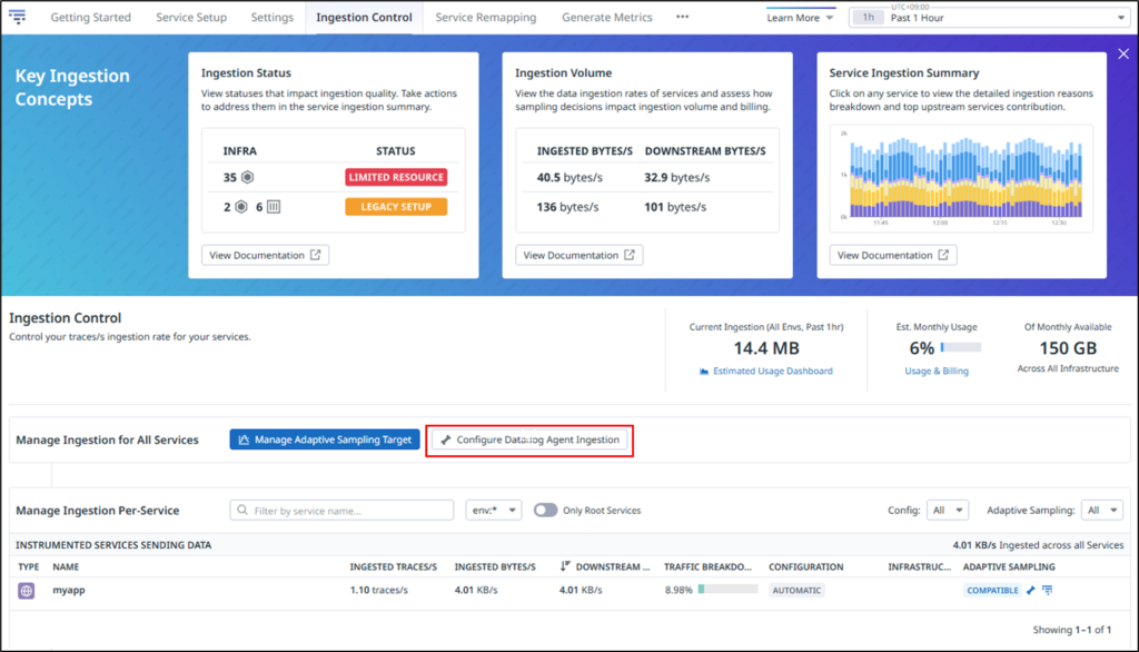 Traces > Ingesteion Control をクリックします。