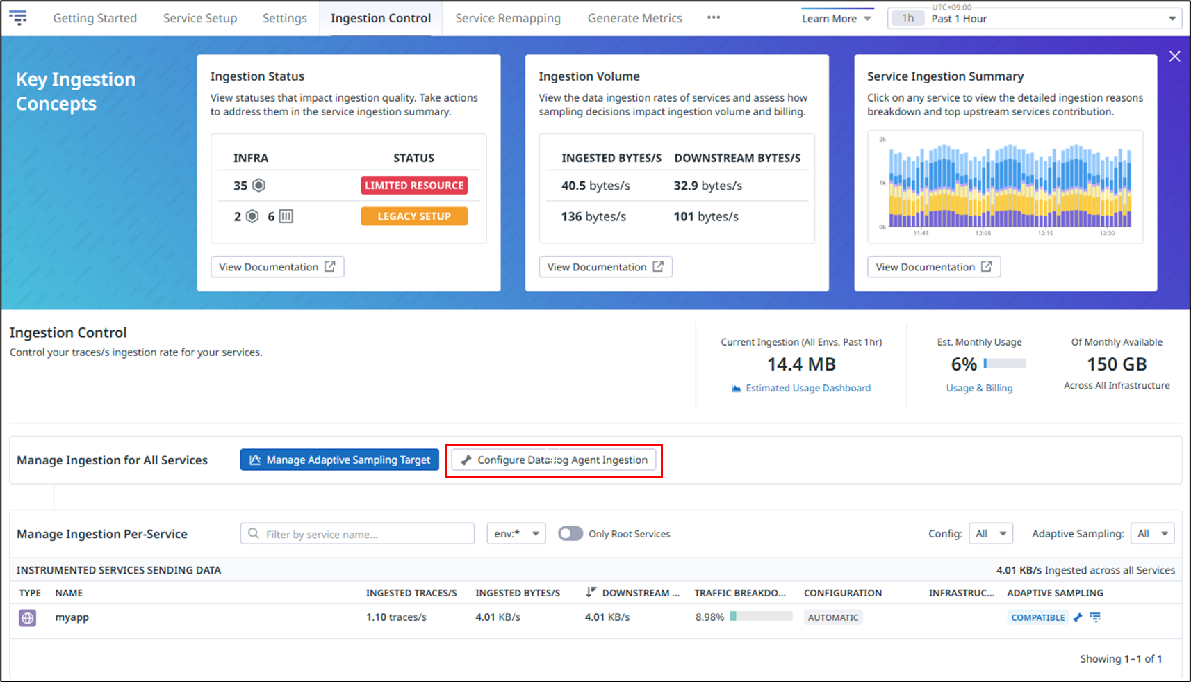 Configure Datadog Agent Ingestion をクリックしてください。