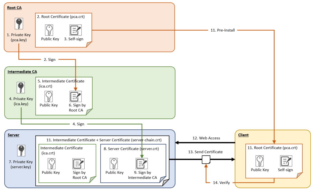 - Deploy the Root Certificate on the client For widely trusted Root Certificates, this is usually already included in the OS or browser.