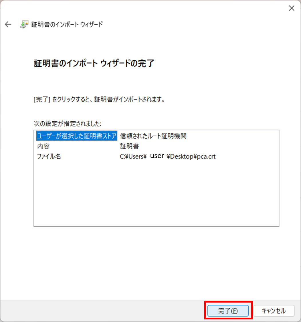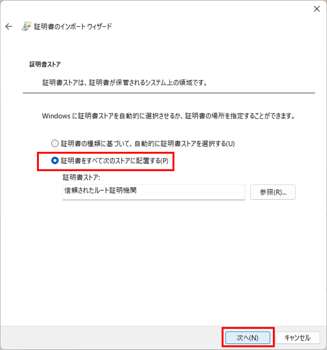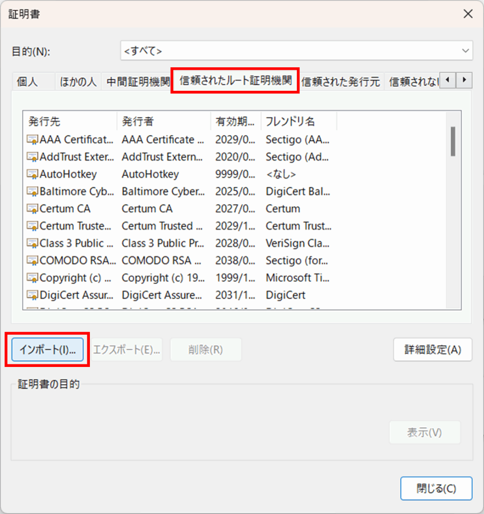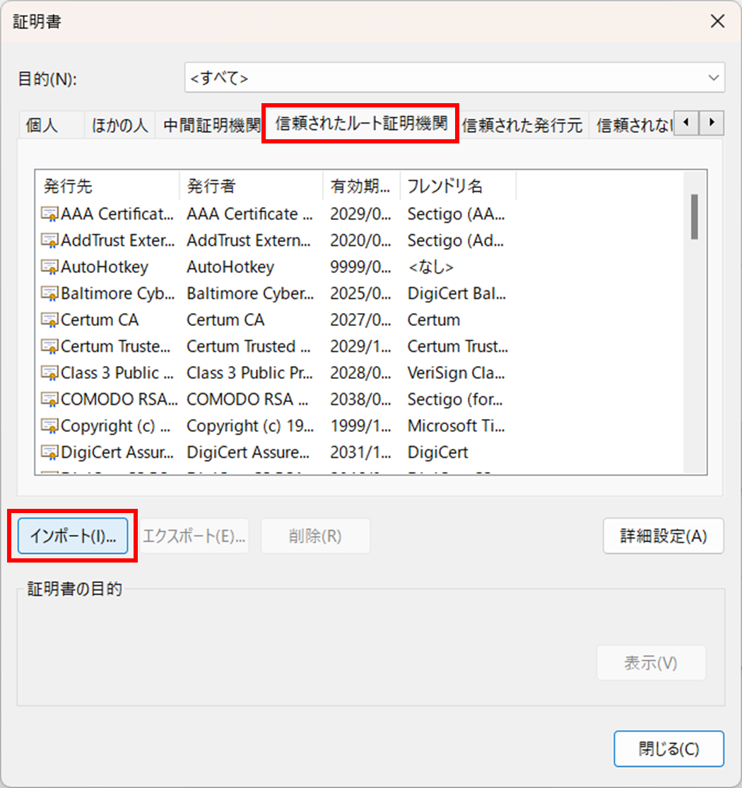 取得結果をもとに、適切なルート証明書が配置されているか確認してください。