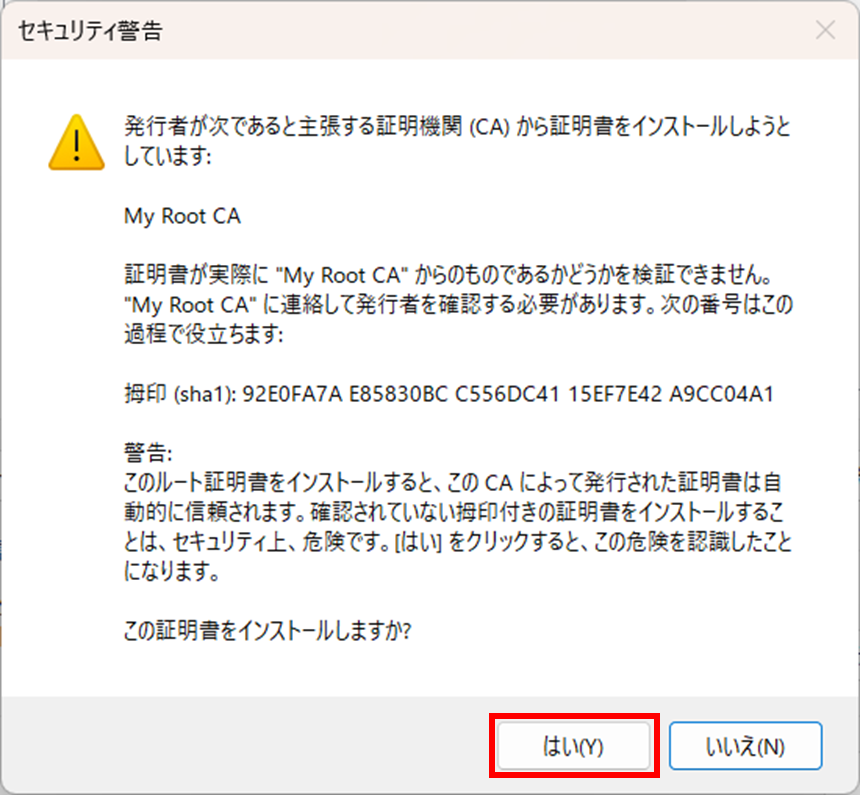 Owner: EMAILADDRESS=pca@example.com, CN=My Root CA, OU=Root CA Unit, O=My Root CA Org, L=Chiyoda, ST=Tokyo, C=JP
