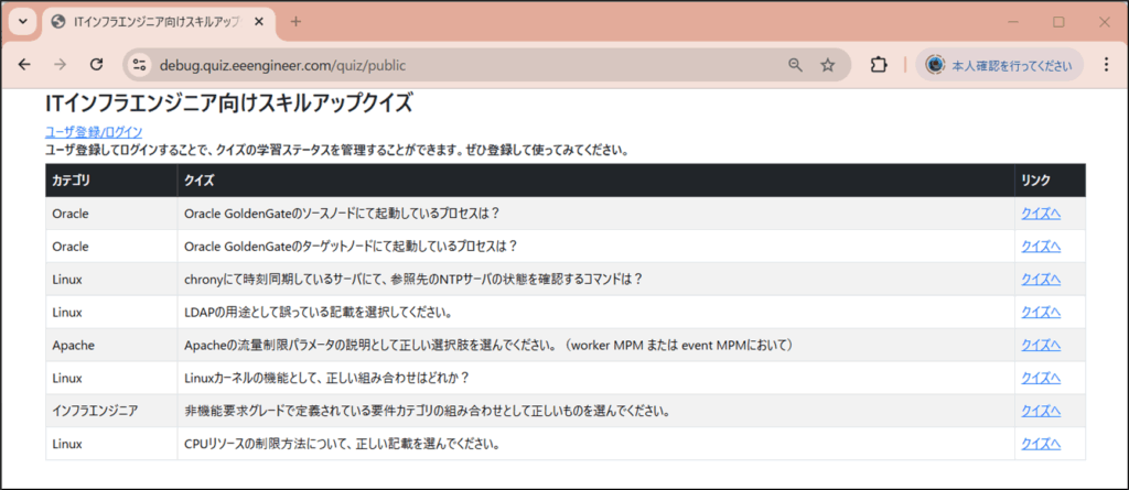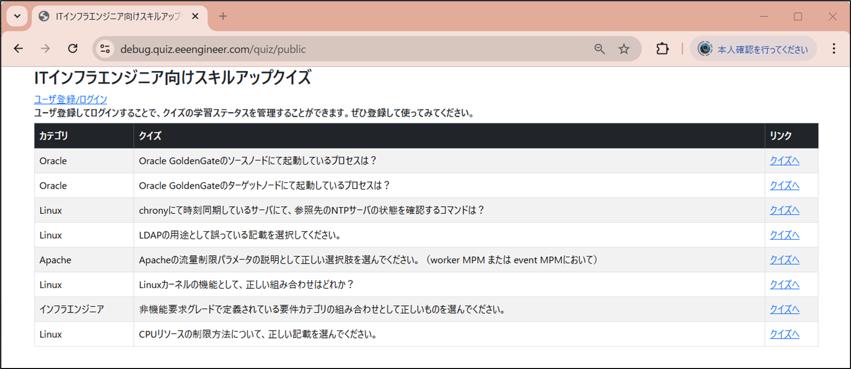 <title>ITインフラエンジニア向けスキルアップクイズ</title>
